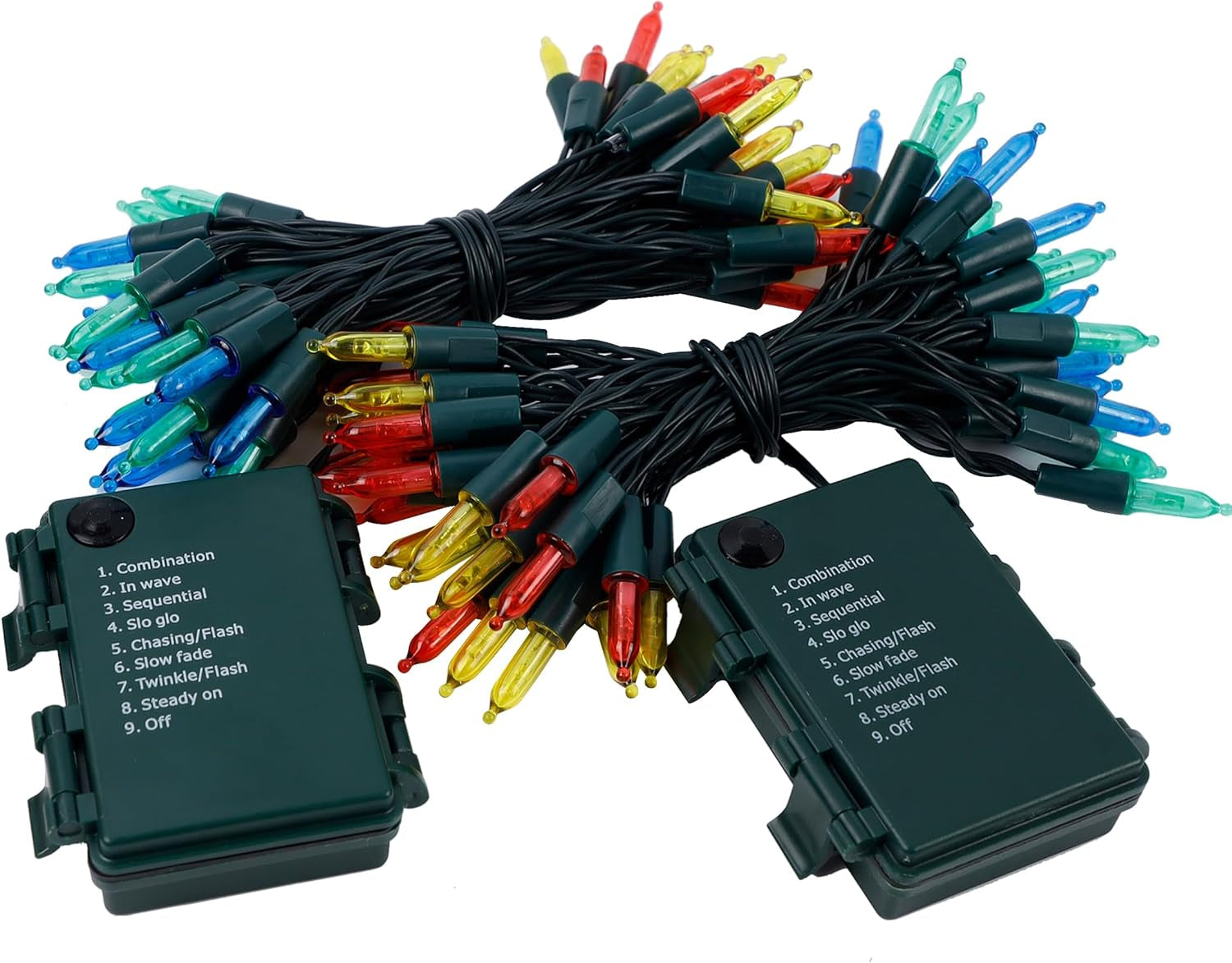 With 100 brilliant multicolored LEDs spread across 32 total feet of flexible green wire, this set offers double the decorating power for one great value. Perfect for wrapping around wreaths, draping across mantels, or decorating patio bushes.