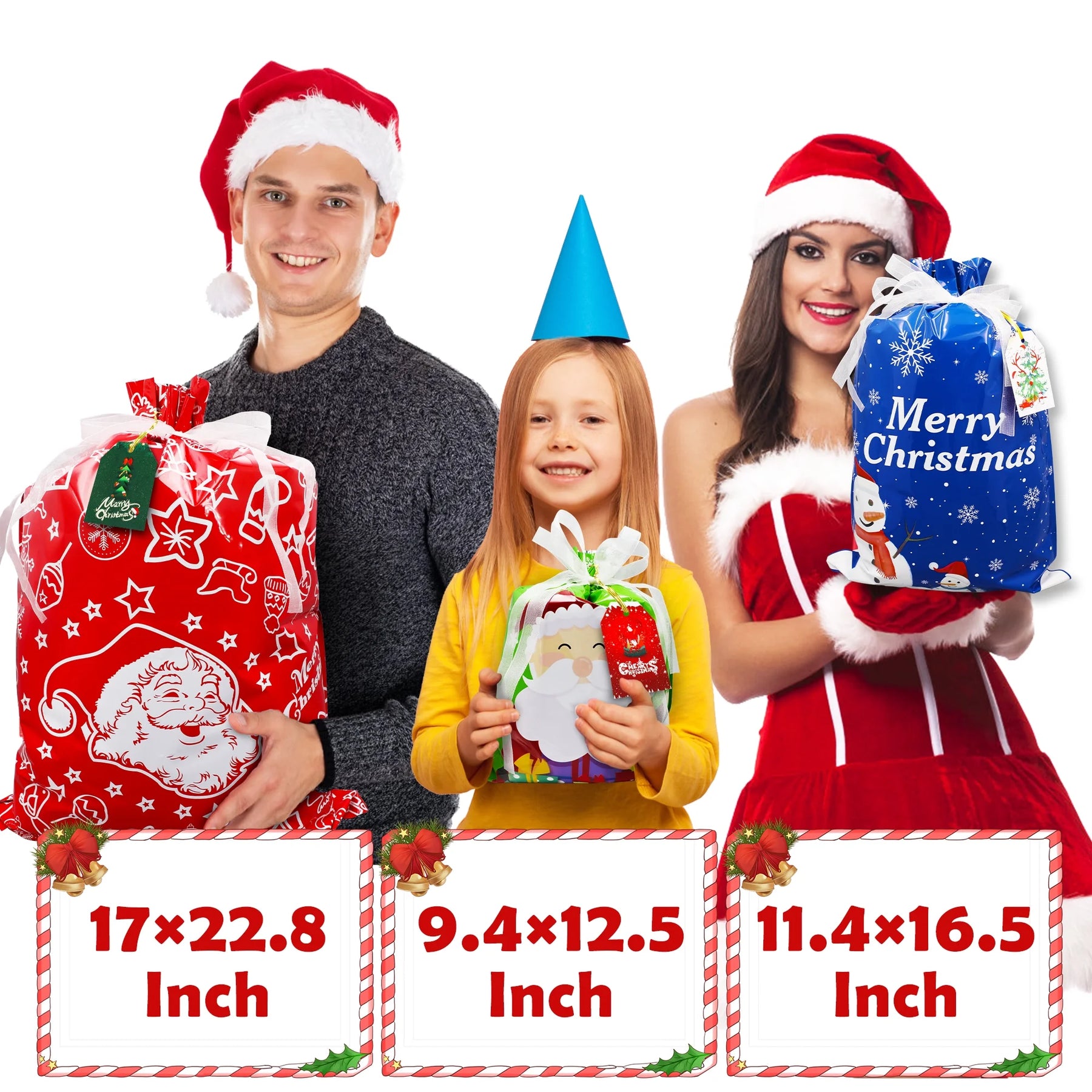 Say goodbye to scissors, sticky tape, and wasted paper. Our 30-Piece Christmas Drawstring Gift Bag Set is the ultimate holiday hack for stress-free gifting.